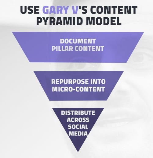 The GaryVee Content Strategy is based on a "reverse pyramid" model that starts with a piece of "pillar content".
